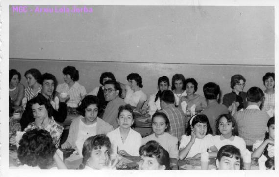 Celebració. Any 1960.Xocolatada per celebrar haver acabat una comedia. Escola 1960 Col·labora: aporta informació d'aquesta imatge