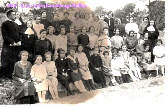 Mercè i Anna Serra, ¿?, Dolors Vilaseca, Conxita Vilarasau, ¿?, Maria Comallonga, Teresa Serra, ¿?, ¿?, ¿?, ¿?, el borrós és Josep Ubach, una Jorba, ¿?.