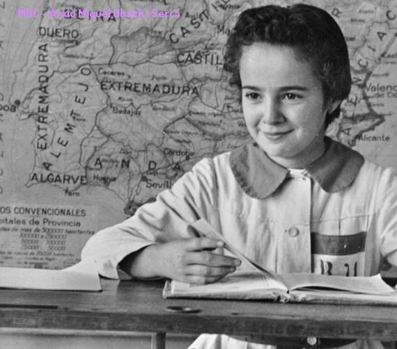 A l'escola. Dècada 1950.Ramona Ubach Serra. Escola 1950 - Dècada Col·labora: aporta informació d'aquesta imatge