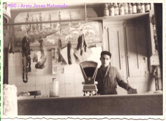 Cal Matamala (Cal Kiko). Any 1962.Antigament la botiga de cal Matamala en deien Cal kiko. A la foto el seu propietari Josep Matamala. Comerços/Bars/Empreses 1962 Col·labora: aporta informació d'aquesta imatge
