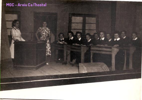 1ra fila: Lola Jorba, Conxita Berenguer, Mercè Algué, Agnès Mitjans, Maria Moncunill i Pepita Algué.