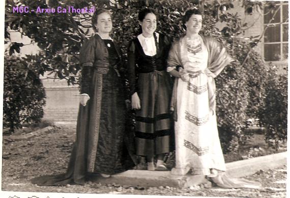 Teatre: El collaret de la princesa. Any 1954.Maria Moncunill: baronesa. Pilar Comaposada: serventa. Pepita Algué: princesa. Teatre 1954 Col·labora: aporta informació d'aquesta imatge